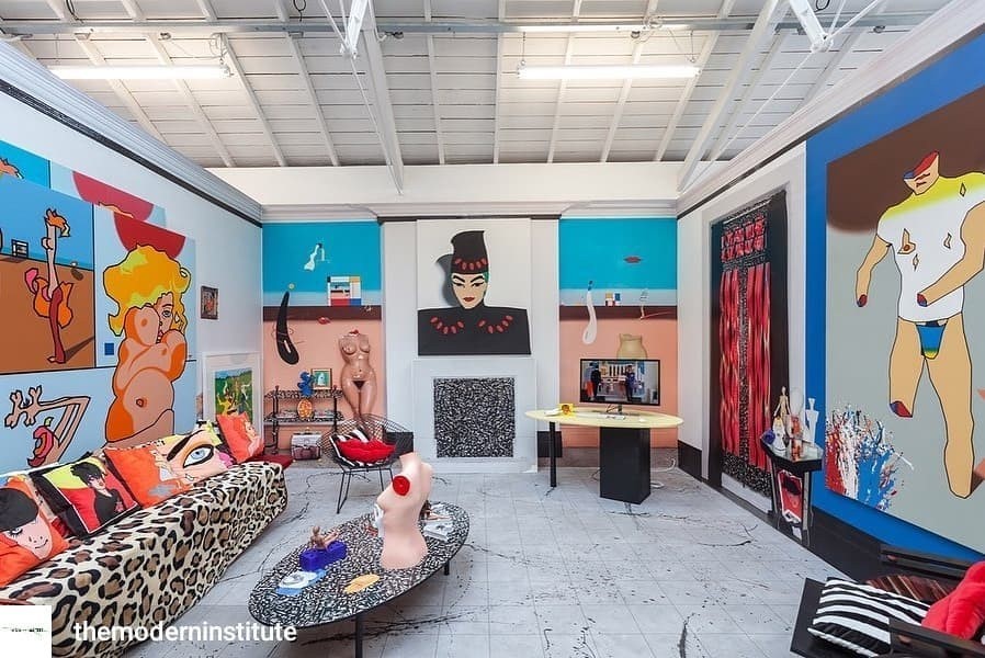 2018 - Glasgow International, The Modern Institute’s Osborne Street gallery played host to the reimagining of the personal live-work environment of British artist Duggie Fields. Field’s body of work is marked by a distinct signature style of post-Pop figuration and self-described MAXIMALism, marrying imagery from classical and popular culture along with art history which is cyclically reused and repurposed within his painted canvases and intrinsically tied to his home of the past 50 years.
