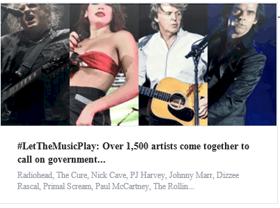 This goverment has had a bad record since day one and we will look back at Theresa May / Brexit / Boris/ Covid the lies and deciet and faliure after failure of this goverment from the ministers and the cock ups but if the country that since 1963 spawned sonme of the best music that still today is celebrated either ny the orgiobal artists Paul McCartney to Theatre to Musicals to DJs Club Brands to world famous music festivals the UK is responsible for a world wide music industry and theatre and entertainment industry employing 100s of thousands of creatives who now need the support of this goverment to survive from the Royal Albert Hall to small live music venues Let The Music Play needs you and btw never asks for anything but puts billions into the economy.