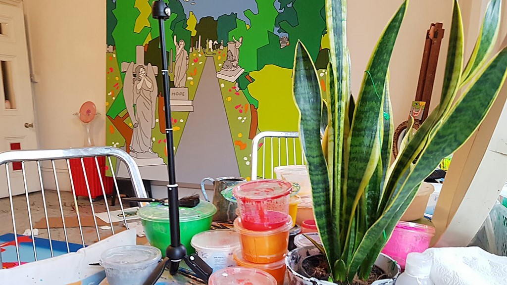 2018 - Glasgow International, The Modern Institute’s Osborne Street gallery played host to the reimagining of the personal live-work environment of British artist Duggie Fields. Field’s body of work is marked by a distinct signature style of post-Pop figuration and self-described MAXIMALism, marrying imagery from classical and popular culture along with art history which is cyclically reused and repurposed within his painted canvases and intrinsically tied to his home of the past 50 years.