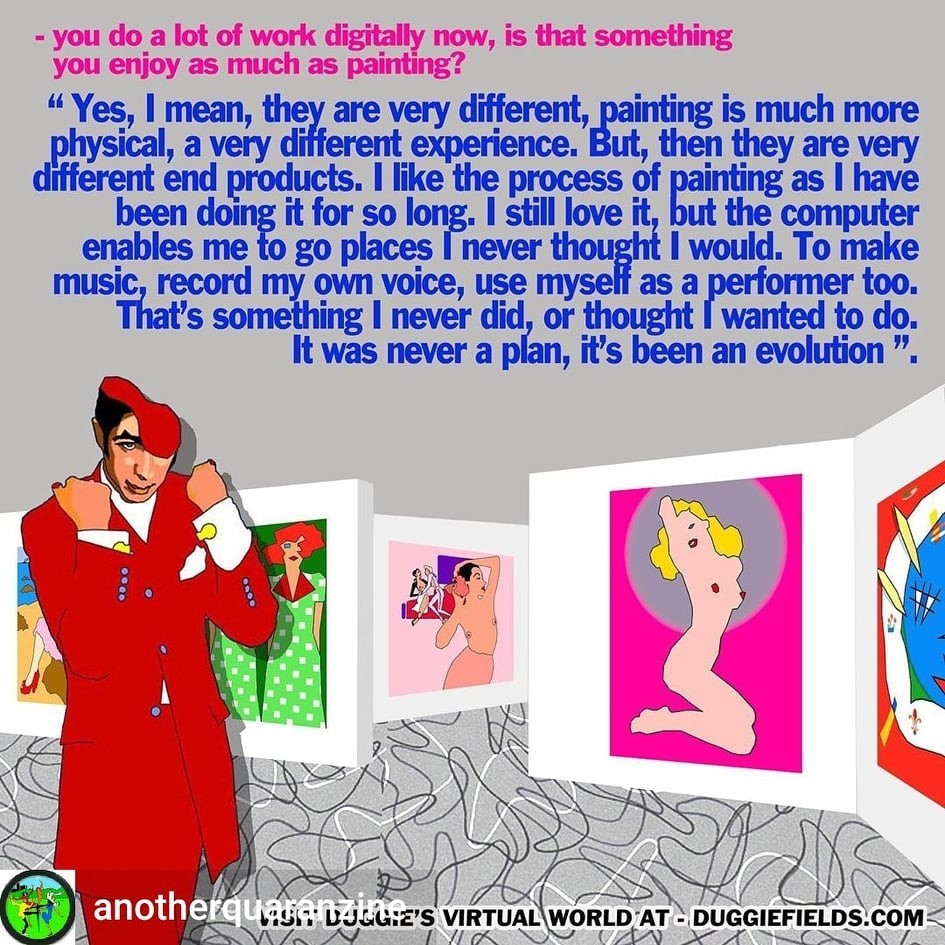 2019 - Duggie Fields was showing at the Marlborough Gallery, London and at Frieze New York, and Los Angeles with The Modern Institute.