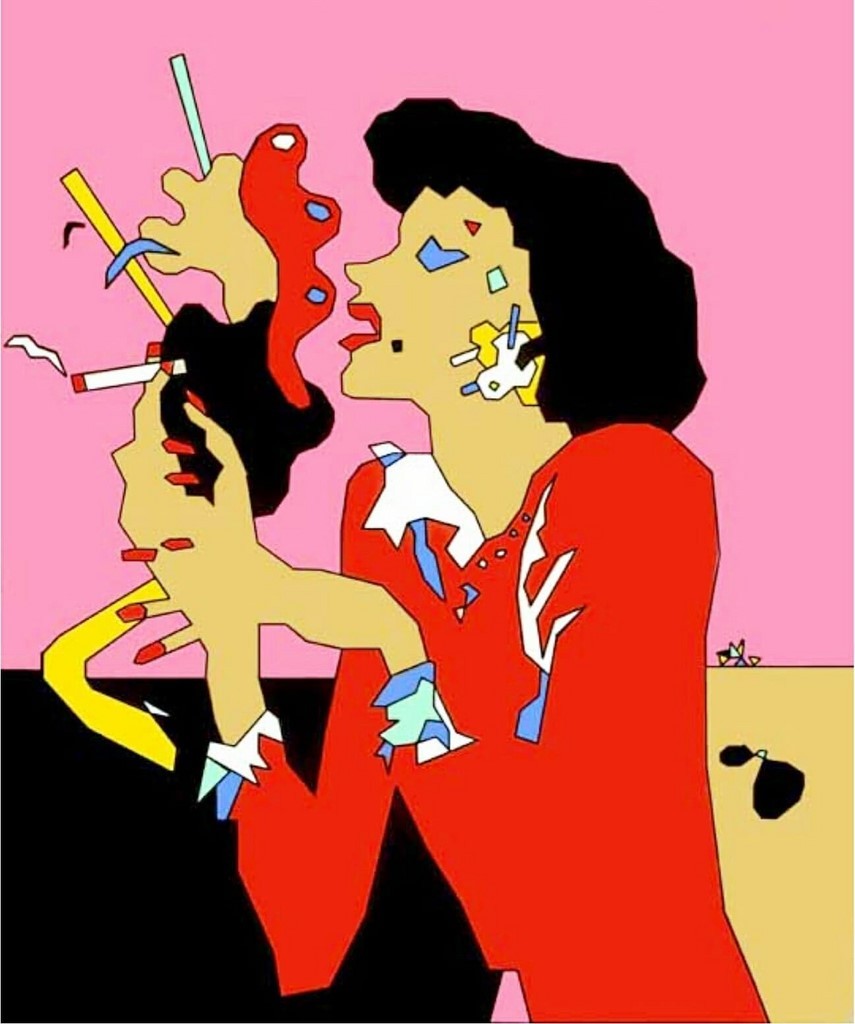 By the middle of the 1970s his work included many elements that were later defined as Post-modernist. In one painting Marilyn Monroe is shown with her head severed. In 1983 Fields was invited to Tokyo by the Shiseido Corporation, where a gallery was created to show his paintings. For the occasion the artist and his work were simultaneously featured in a television, magazine, billboard and subway advertising campaign throughout Japan.