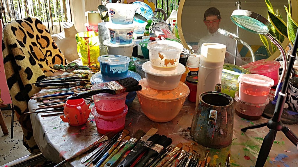 His main influences were at that time Jackson Pollock, Mondrian and comic books, with a special regard to those worked on by Stan Lee. In 1968, after his US visit, Fields went to live in Earl's Court Square and shared a flat with Syd Barrett, who had just left Pink Floyd. Fields still lives in the same flat and he works in Barrett's former room, using it as his atelier.
