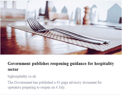 Government publishes reopening guidance for hospitality sector